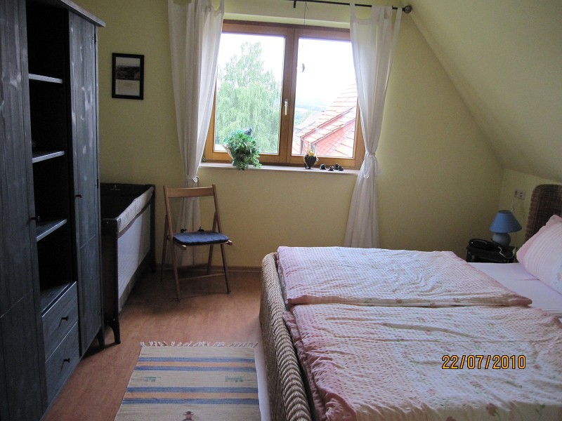 • Schlafzimmer mit 1 Doppelbett 1,80 x 2,oo mtr. und Kleiderschrank